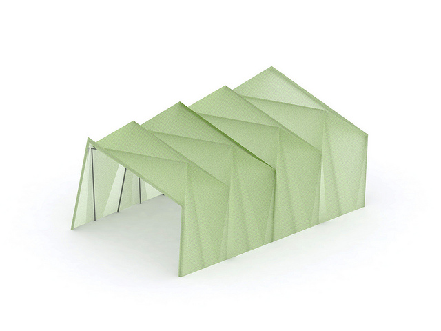 Un vaste vélum étanche crée une seconde peau et recouvre l’ensemble de la ferme pour préserver des excès du soleil.